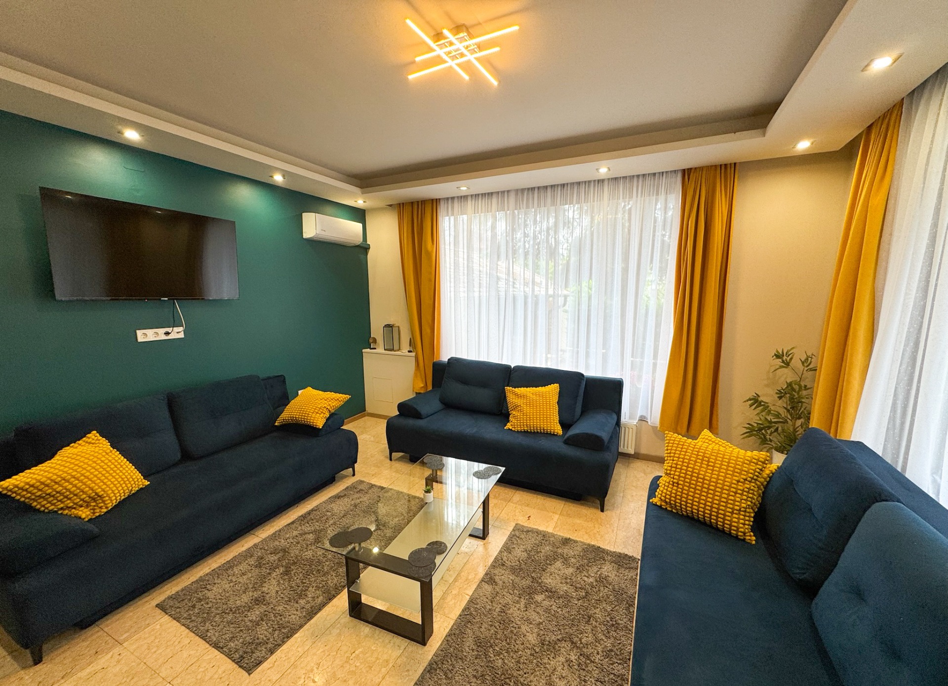Vendégházunkat úgy alakítottuk ki, mintha egy privát klubba lépnél be, amelyet csak te és a társaságod használtok. A tágas, modern közösségi terek nappal barátságos, világos nappaliként működnek, este pedig pillanatok alatt átalakulnak buliközponttá. Kényelmes kanapék, nagy étkezőasztal és praktikus bárpult vár, ahol együtt készülődhettek, koccinthattok, beszélgethettek. A hangulatot meleg fények, ízléses dekoráció és átgondolt térszervezés teszi igazán otthonossá, mégis exkluzívvá.