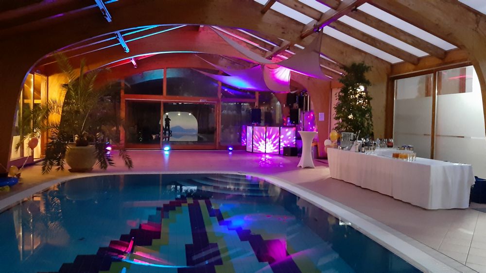 Javasolt hangulatos fotók: nappali közösségi tér buli közben, tánctér fénytechnikával, wellness részleg használat közben.